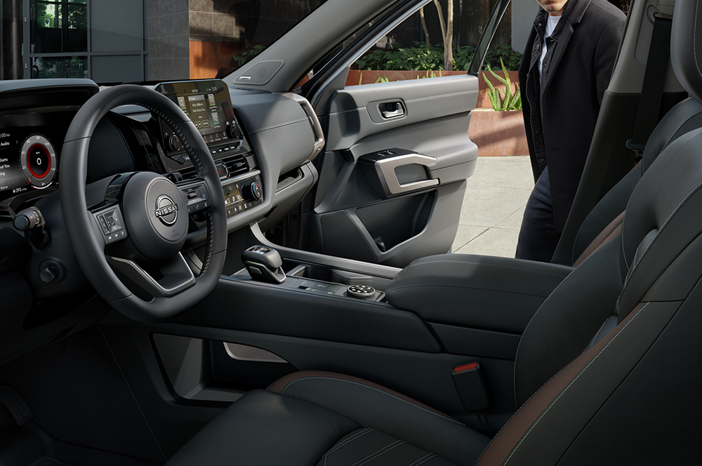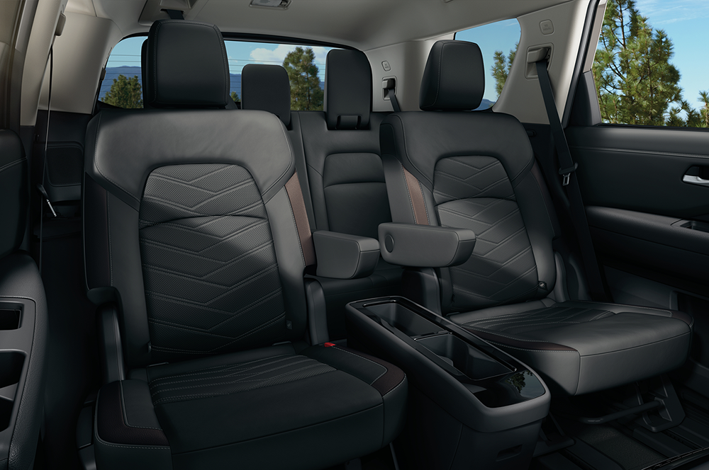 The base S trim includes all the essentials like 18-inch wheels, LED headlights, three-zone climate control, cloth seats, an 8-inch touchscreen with Apple CarPlay and Android Auto, and Nissan Safety Shield 360. Stepping up to the SV model adds convenient amenities like roof rails, heated mirrors, power driver’s seat, heated front seats, a leather-wrapped steering wheel, Wi-Fi hotspot, and Nissan’s ProPilot Assist with adaptive cruise control. An SV Premium package adds a panoramic sunroof, towing features, and captain’s chairs. The SL trim builds onto the SV with more luxury features like leather seats, a power passenger seat, heated steering wheel, second-row sunshades, a 9-inch touchscreen with navigation and wireless Apple CarPlay, wireless charging, and a surround-view camera. There is also an optional SL Premium package that adds a Bose audio system, a panoramic sunroof, 20-inch wheels, and towing upgrades. The off-road-oriented Rock Creek trim comes with standard all-wheel drive, all-terrain tires, raised suspension, tubular roof rails, synthetic leather seats, heated second-row captain’s chairs, removable center console, and rugged exterior styling. Rounding out the bunch is the most luxurious Platinum trim that showcases premium leather, ventilated front seats, heated second-row seats, a head-up display, digital gauges, Bose audio, a panoramic sunroof, a hands-free liftgate, and power-folding mirrors.